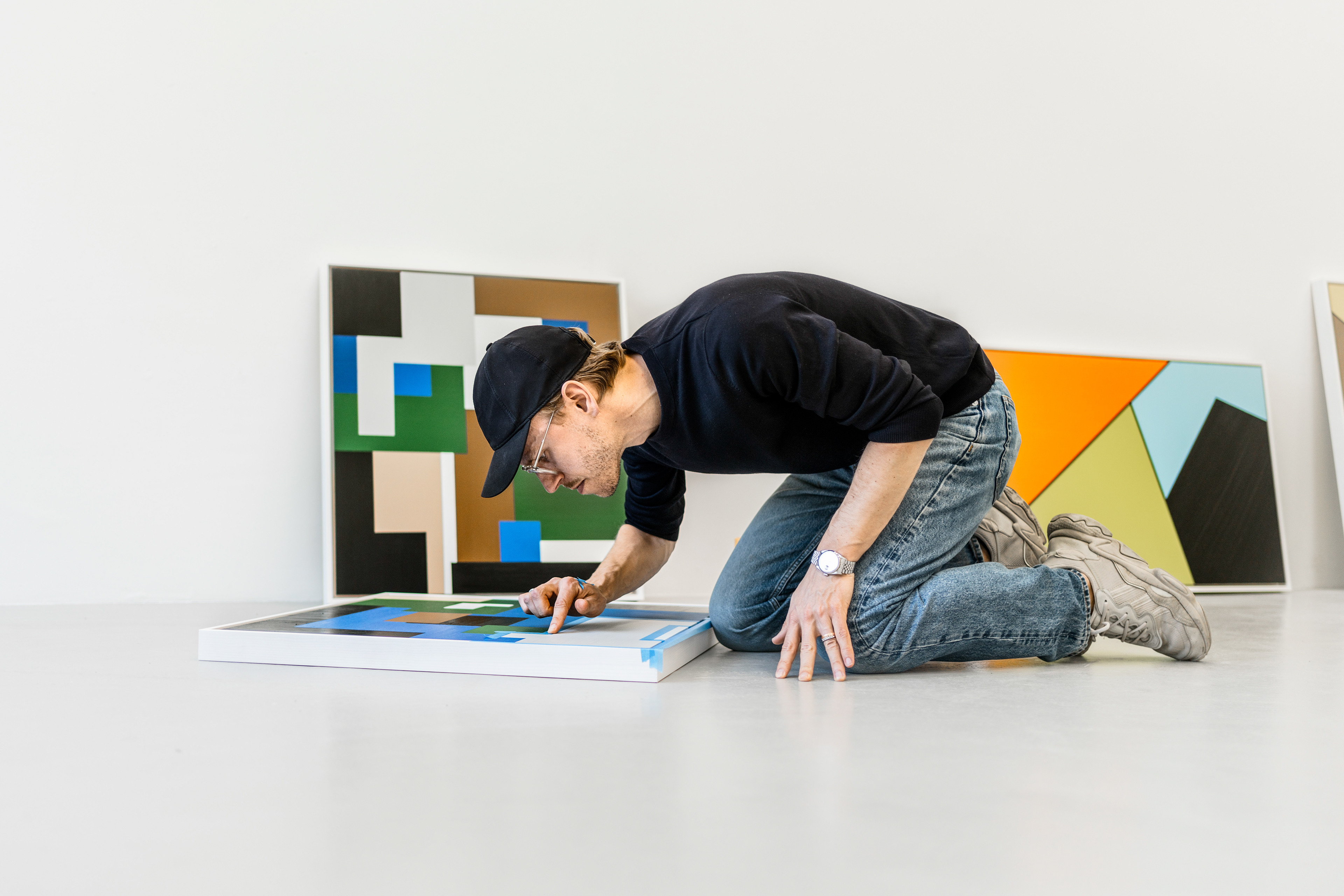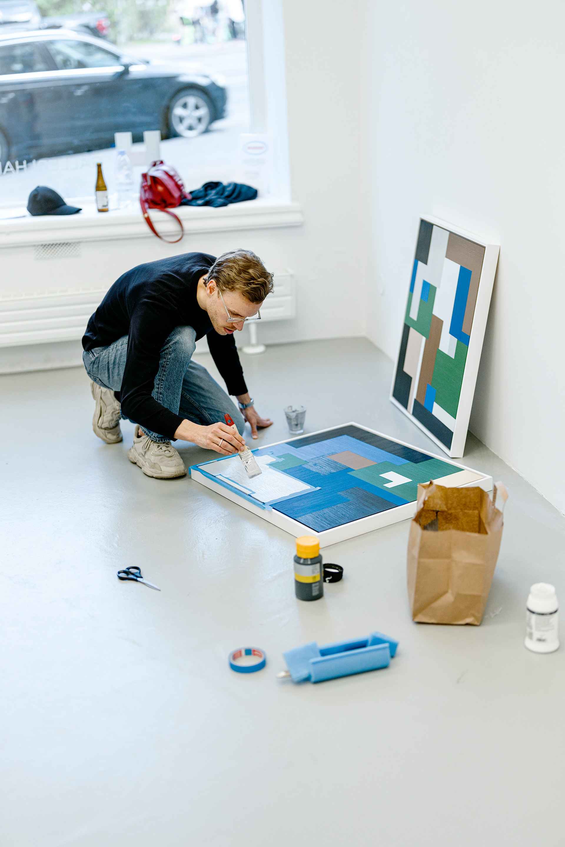 Konstnären Sigfrid Billgren inför sin utställning på Galleri Hammarén, Göteborg.